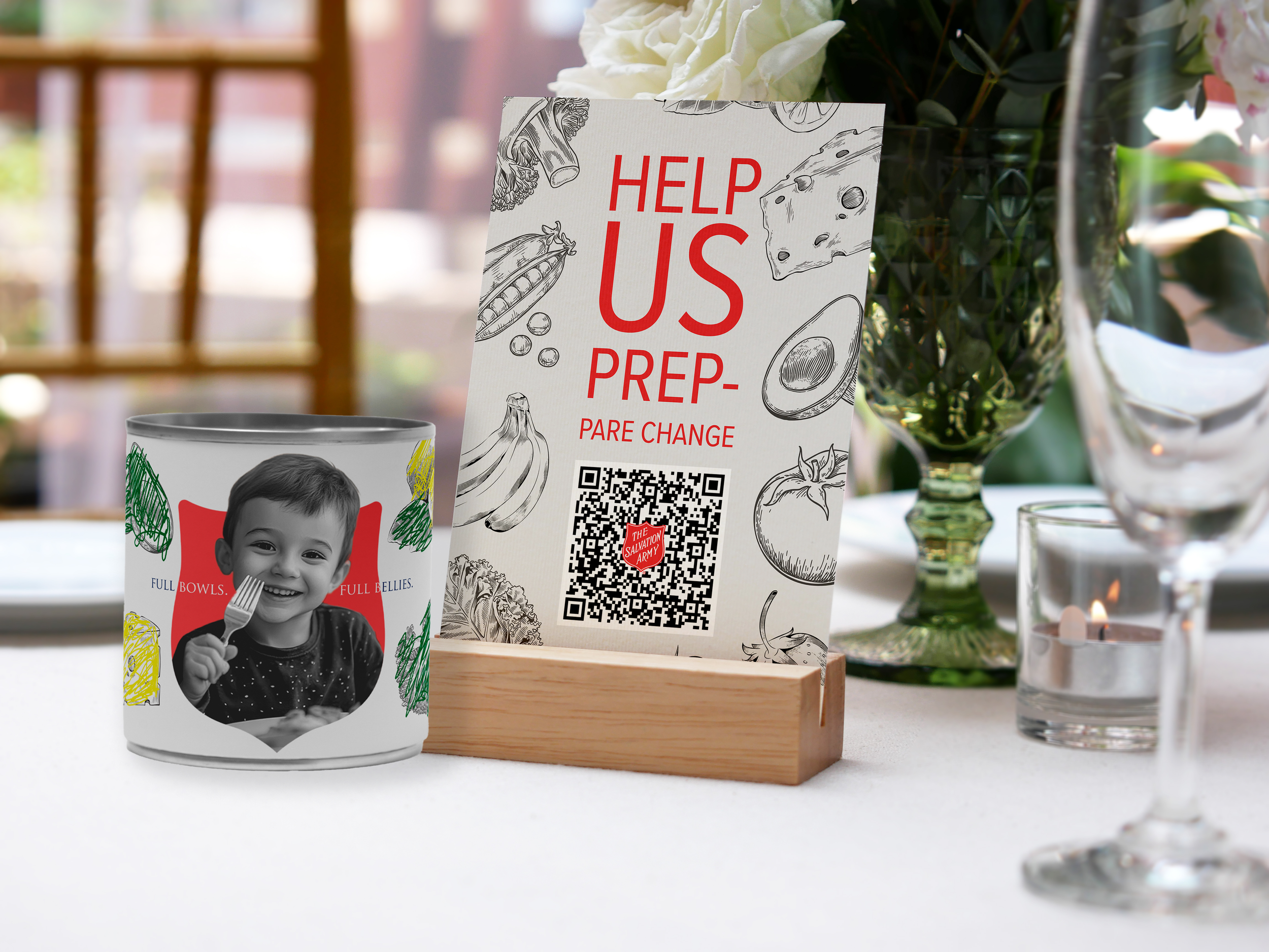 Centerpieces for the 2025 Donor & Volunteer Luncheon, cans colored by the Center of Hope shelter clients.